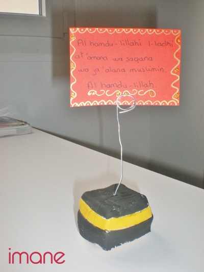 • Une fois votre porte-du’a séché, insérer le fil de fer et placer la petit carte.
