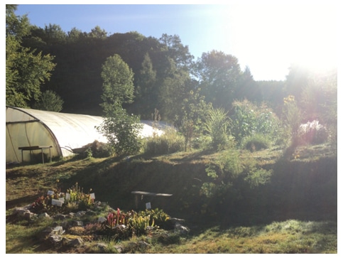 Après une bonne nuit de sommeil sous la tente, je me réveille dans un jardin qui sent bon le matin frais, à l’ambiance mystérieuse, des fleurs, des plantes… Des étiquettes… Bienvenue au Jardin du Centaure.